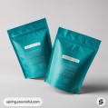 Two teal resealable pouches with yellow circular label