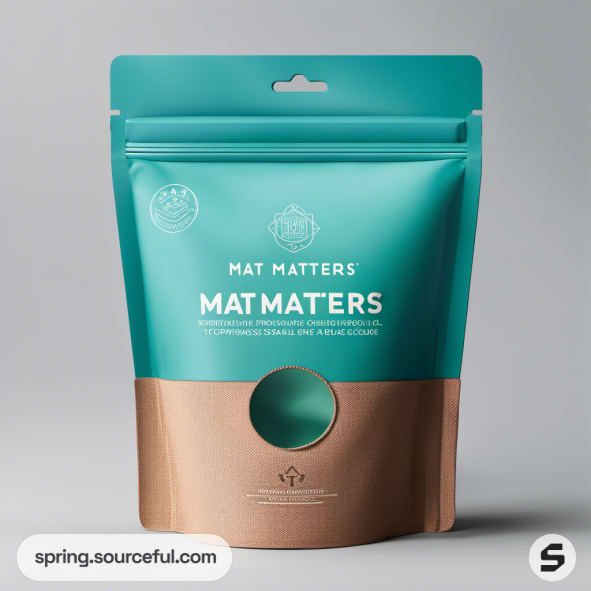 Teal and brown resealable pouch with circular window