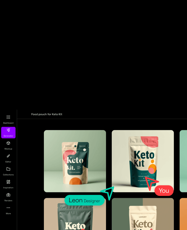 Our AI packaging designer gives you unlimited creative directions. Whether you're after playful, premium or bold, you'll get dozens of concepts in seconds.
